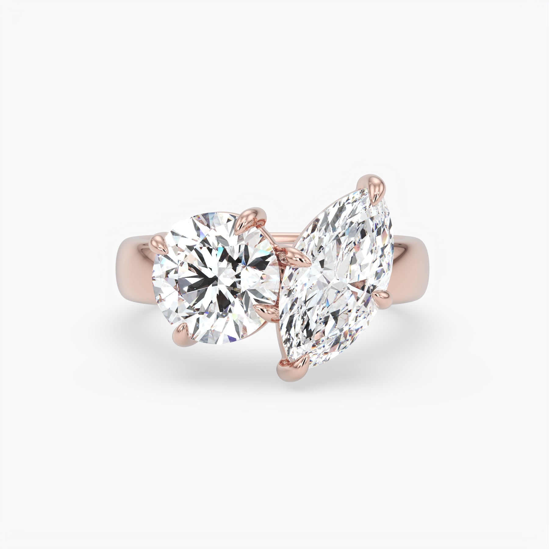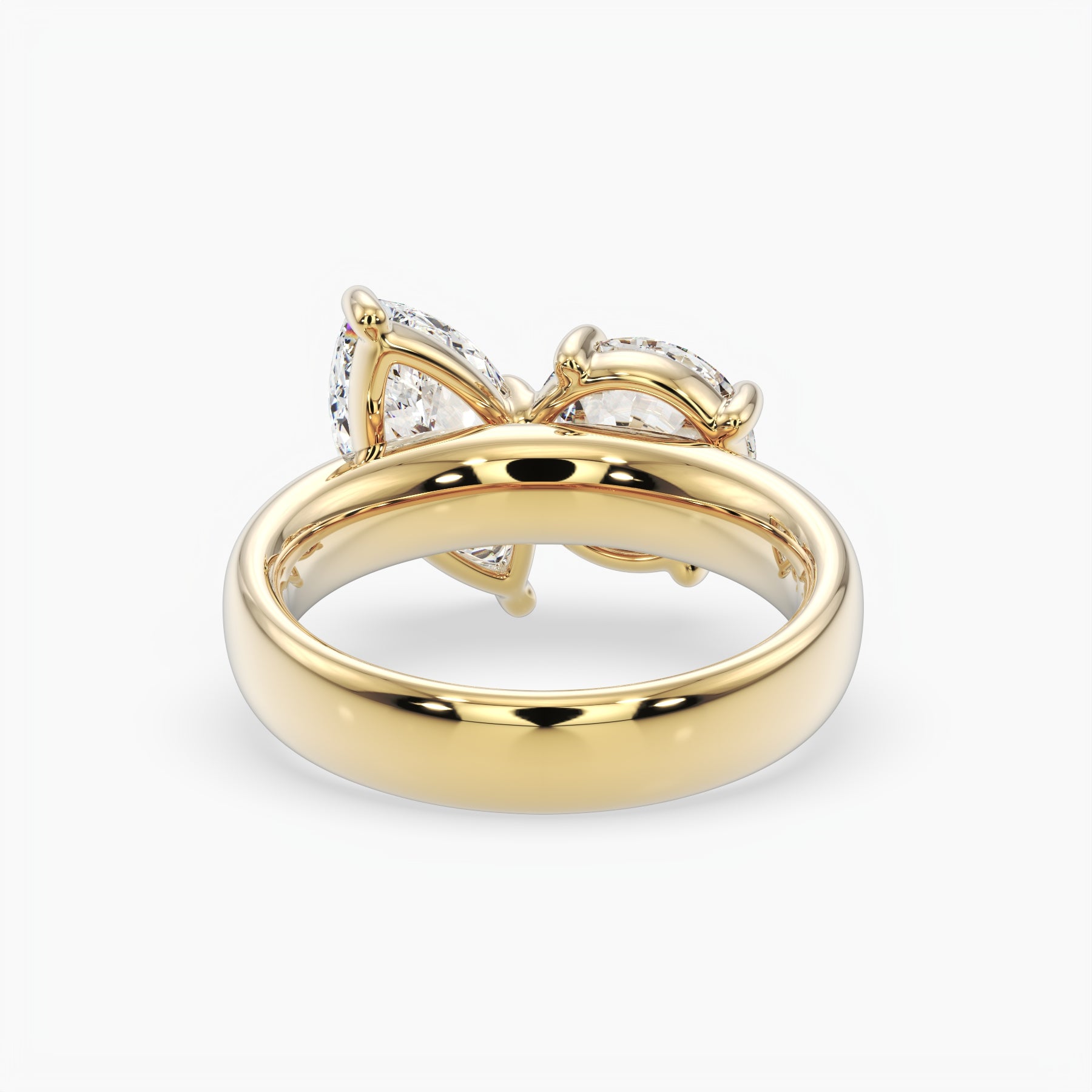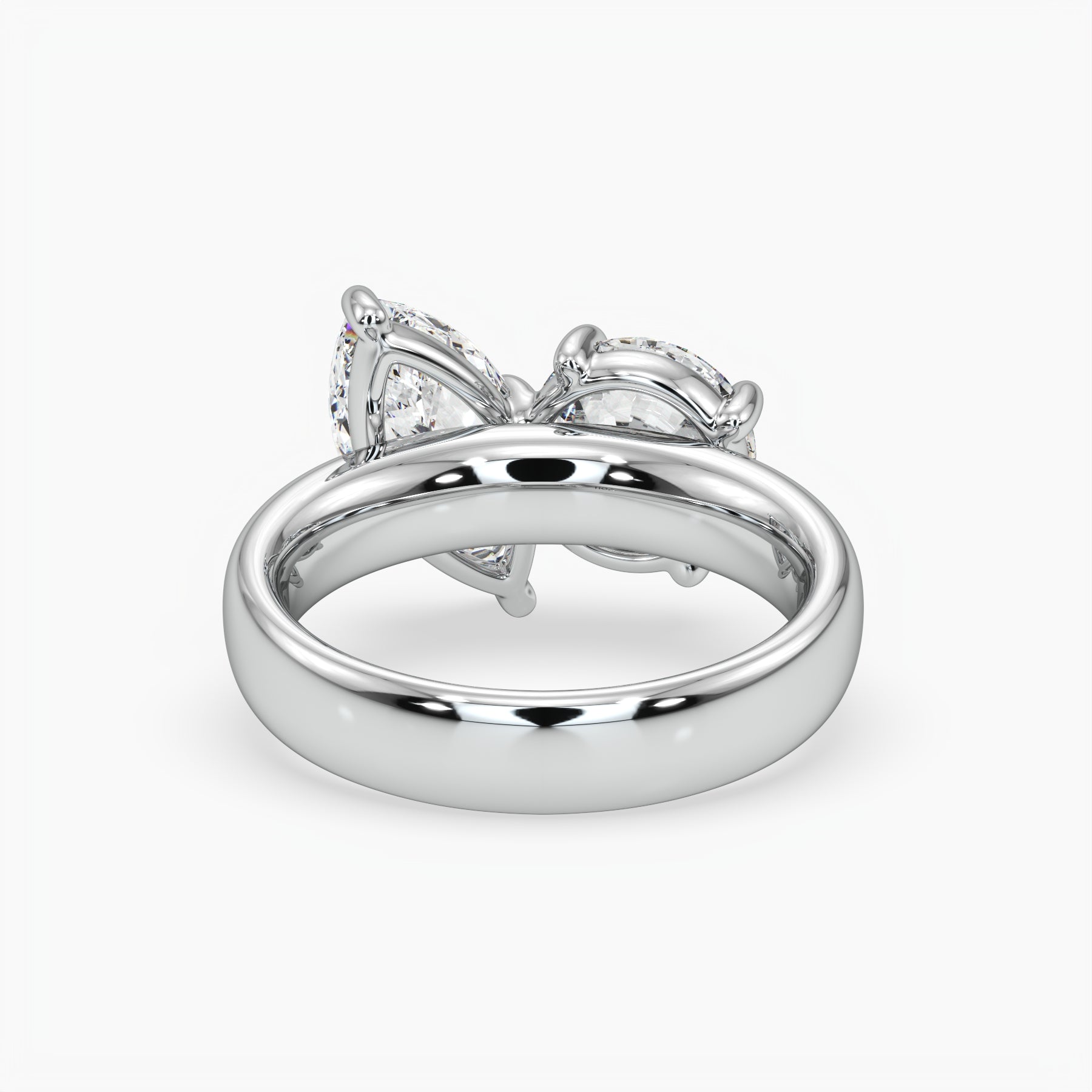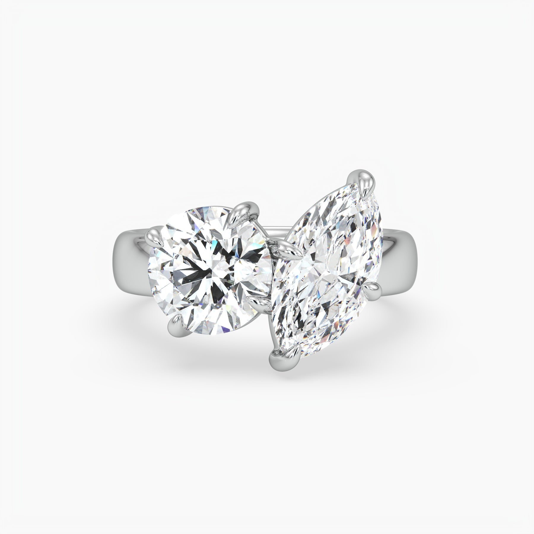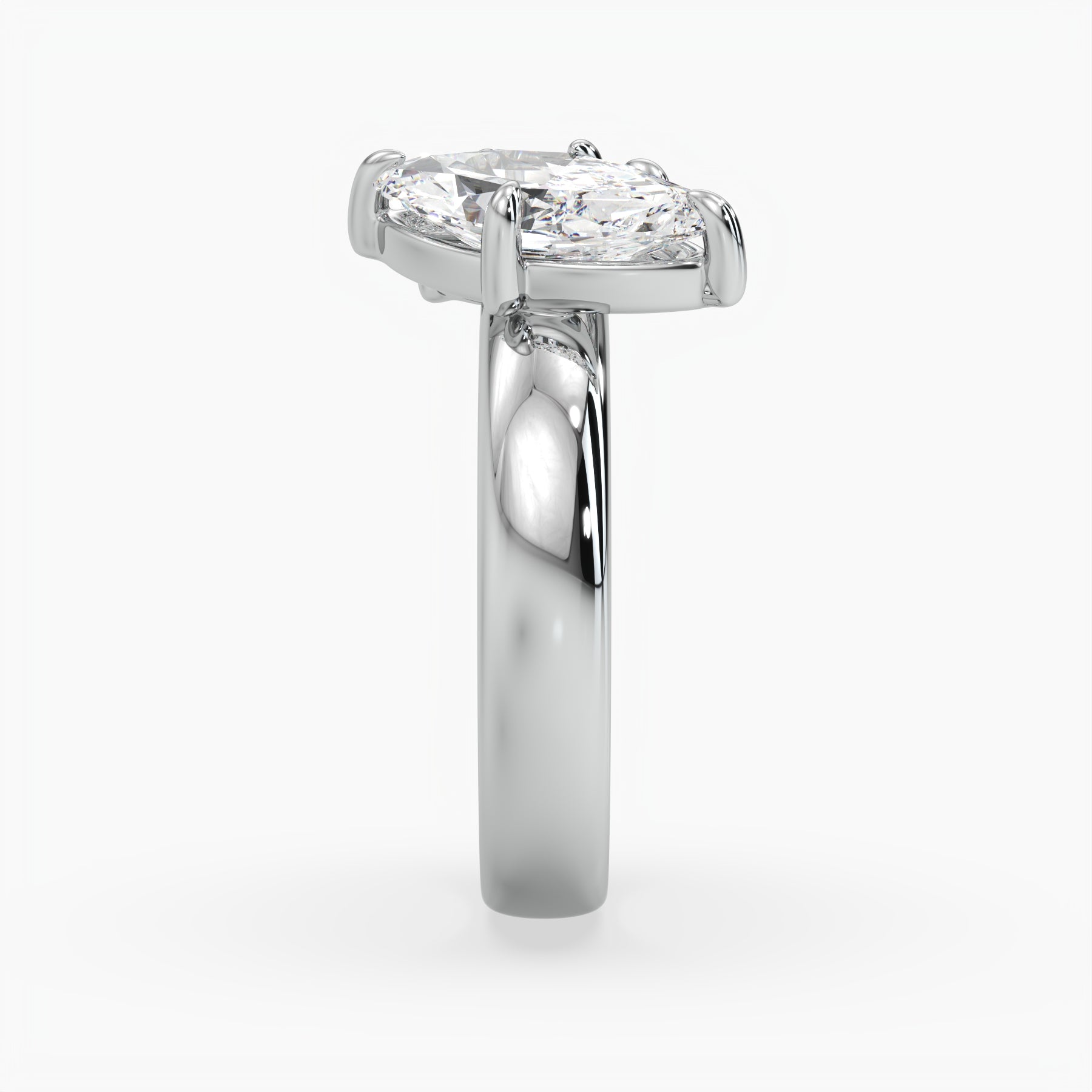 The Willow Toi Et Moi Ring is modern, contemporary and unique. Featuring a 1.5ct Marquise and 2ct Round cut Lab Grown Diamonds set on a bold wide 4mm band.