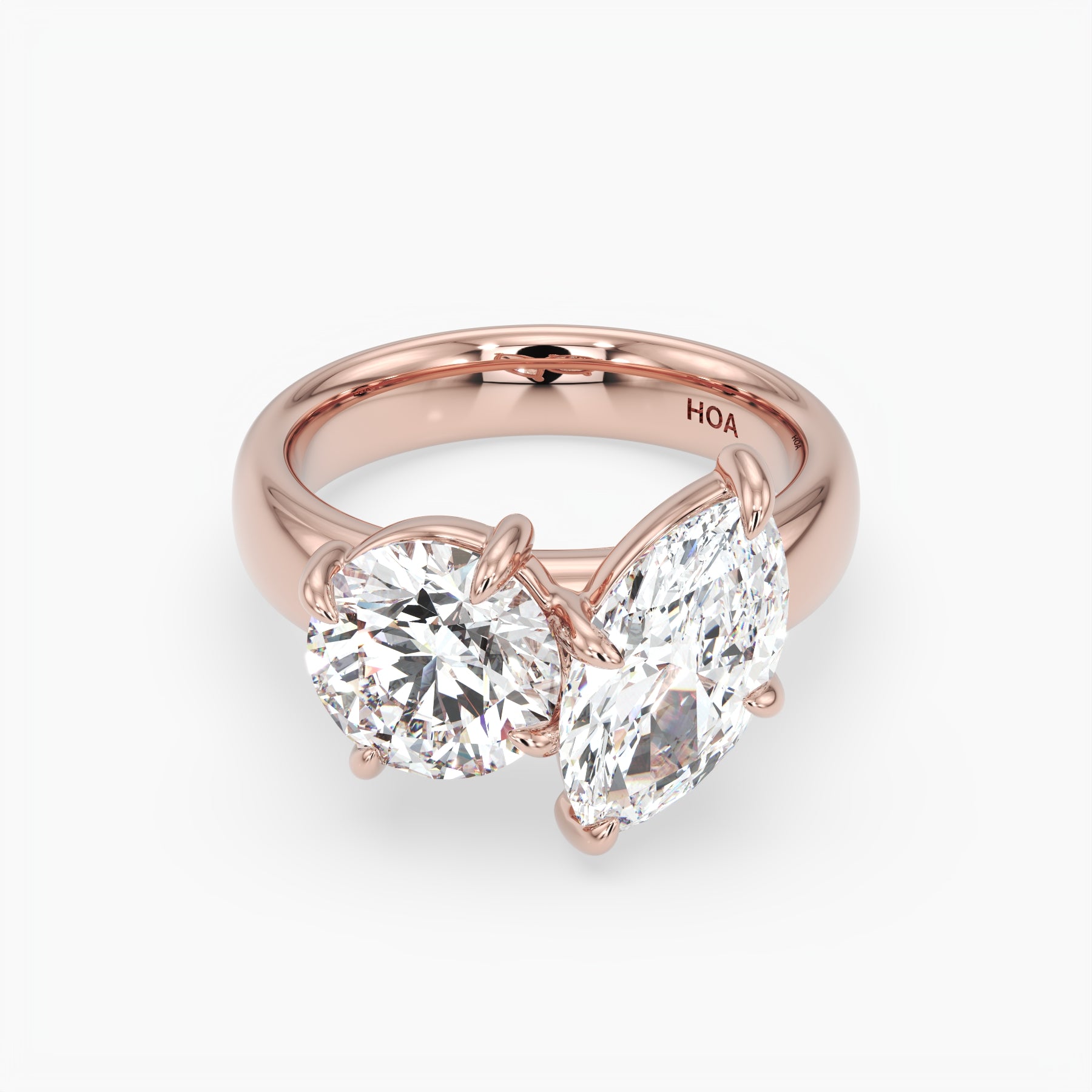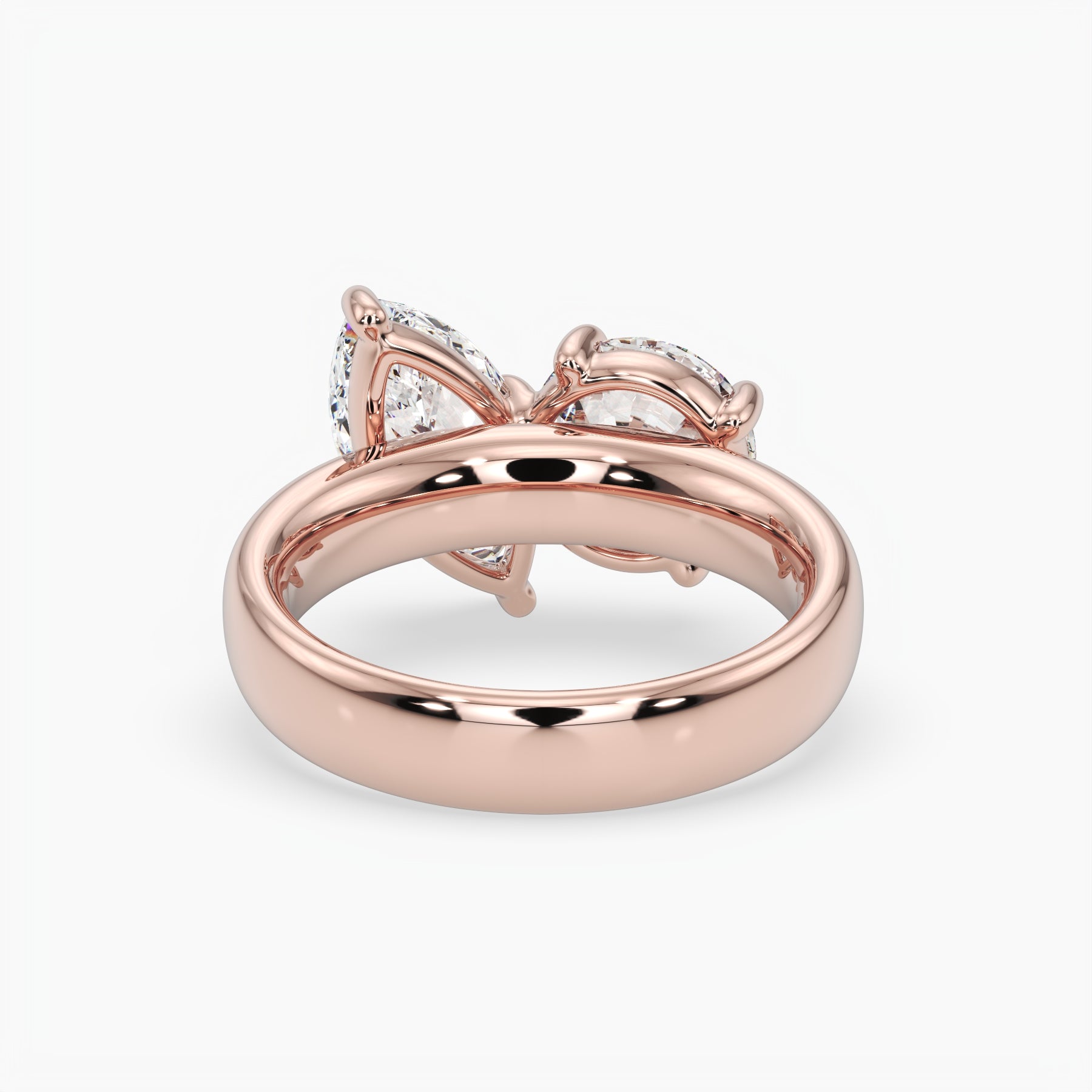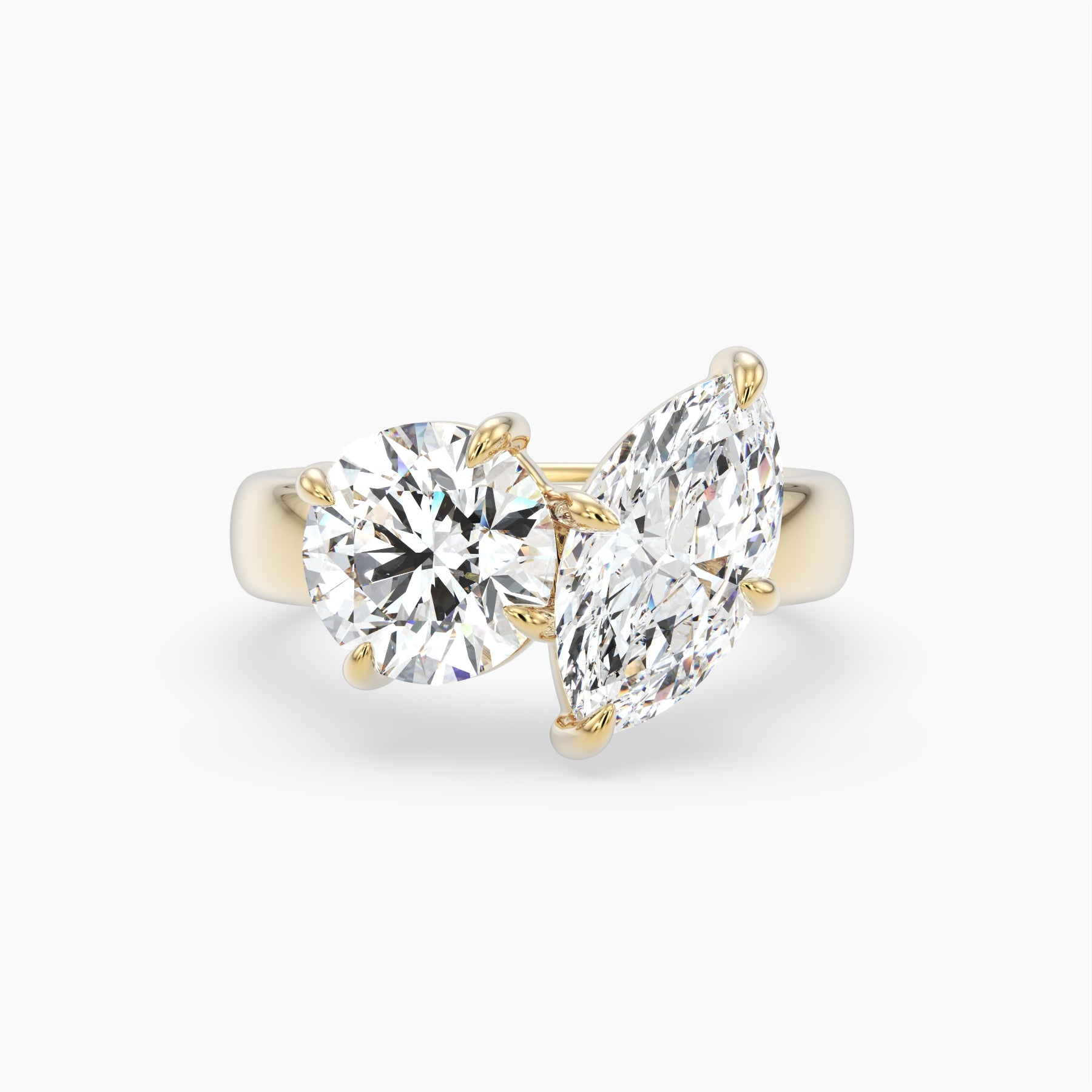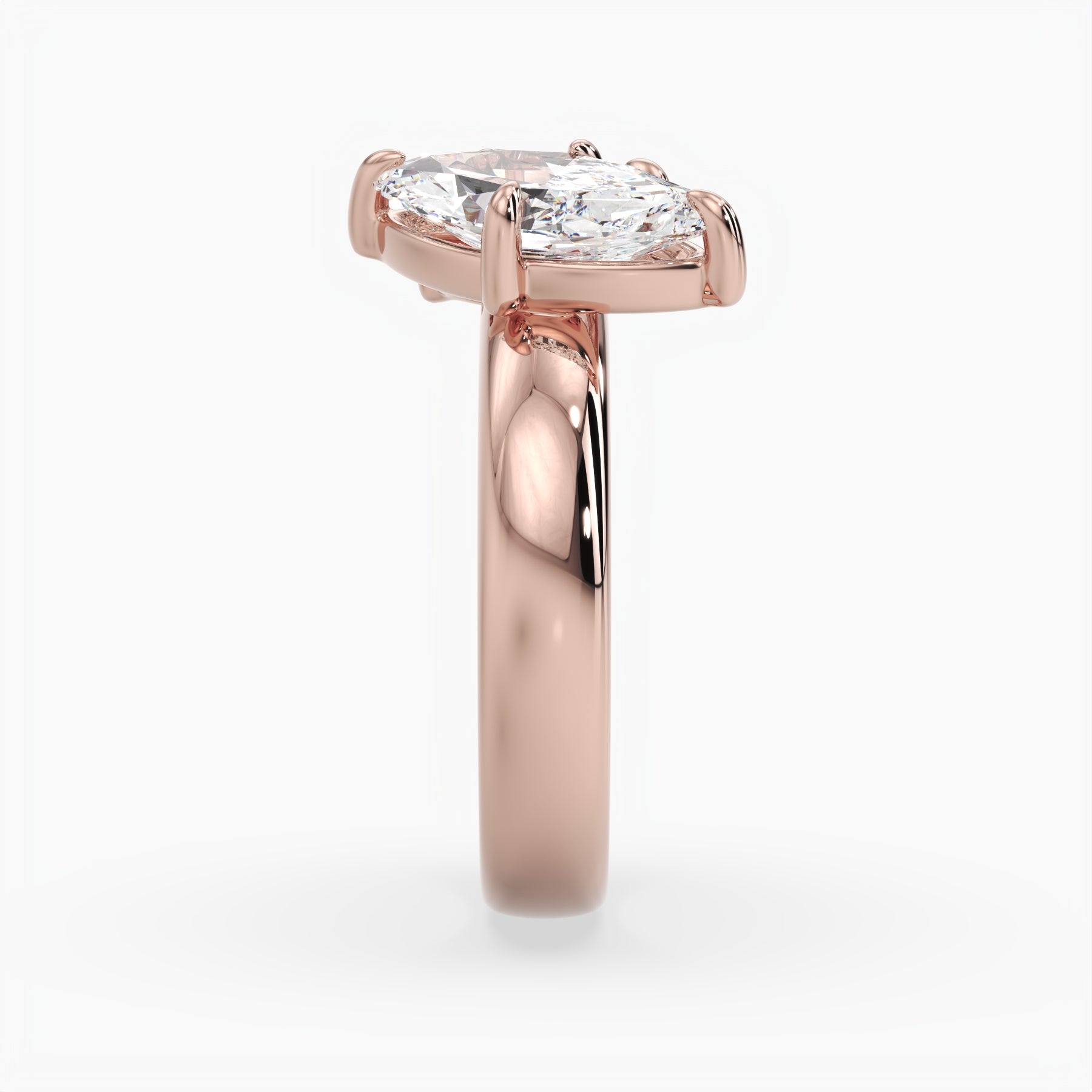 The Willow Toi Et Moi Ring is modern, contemporary and unique. Featuring a 1.5ct Marquise and 2ct Round cut Lab Grown Diamonds set on a bold wide 4mm band.