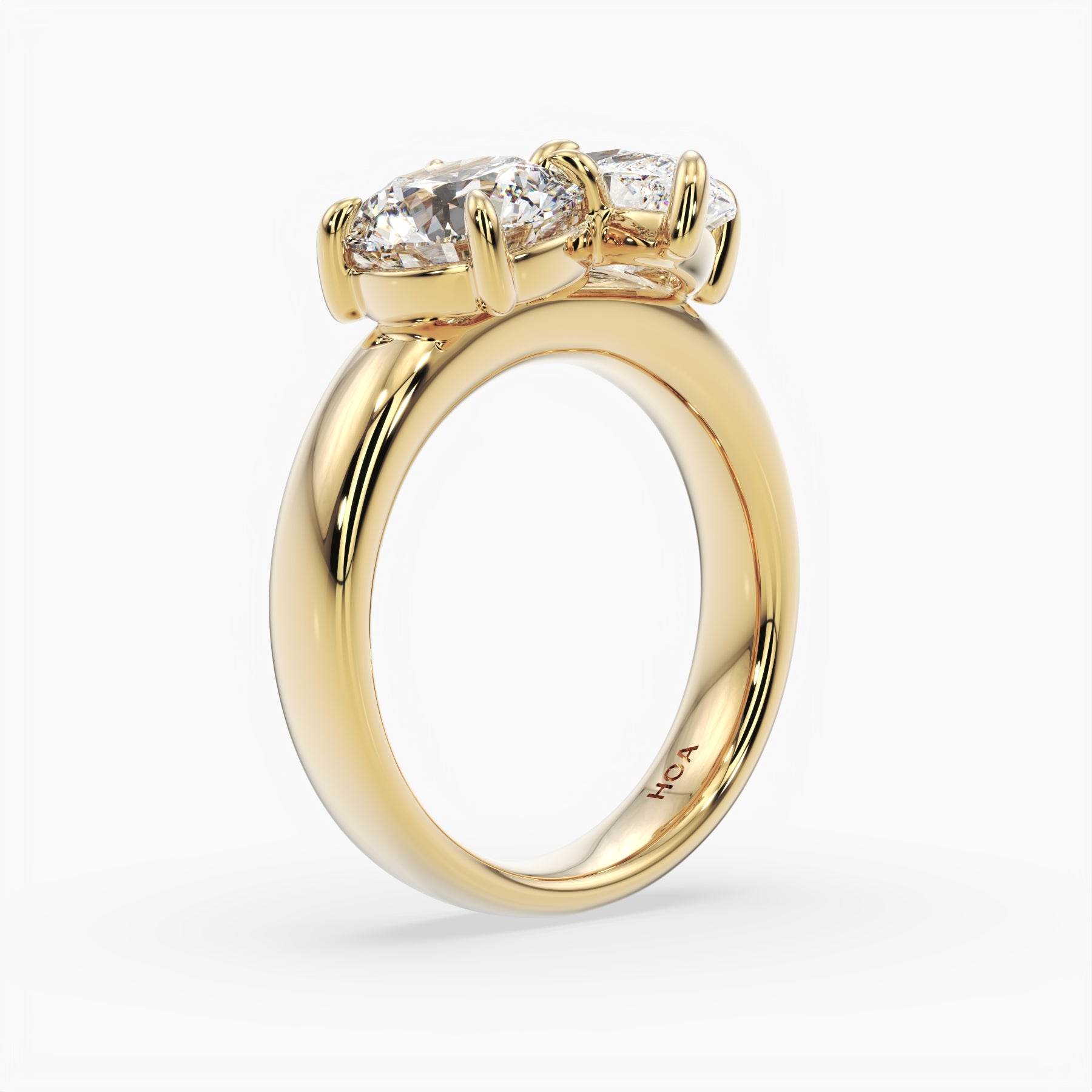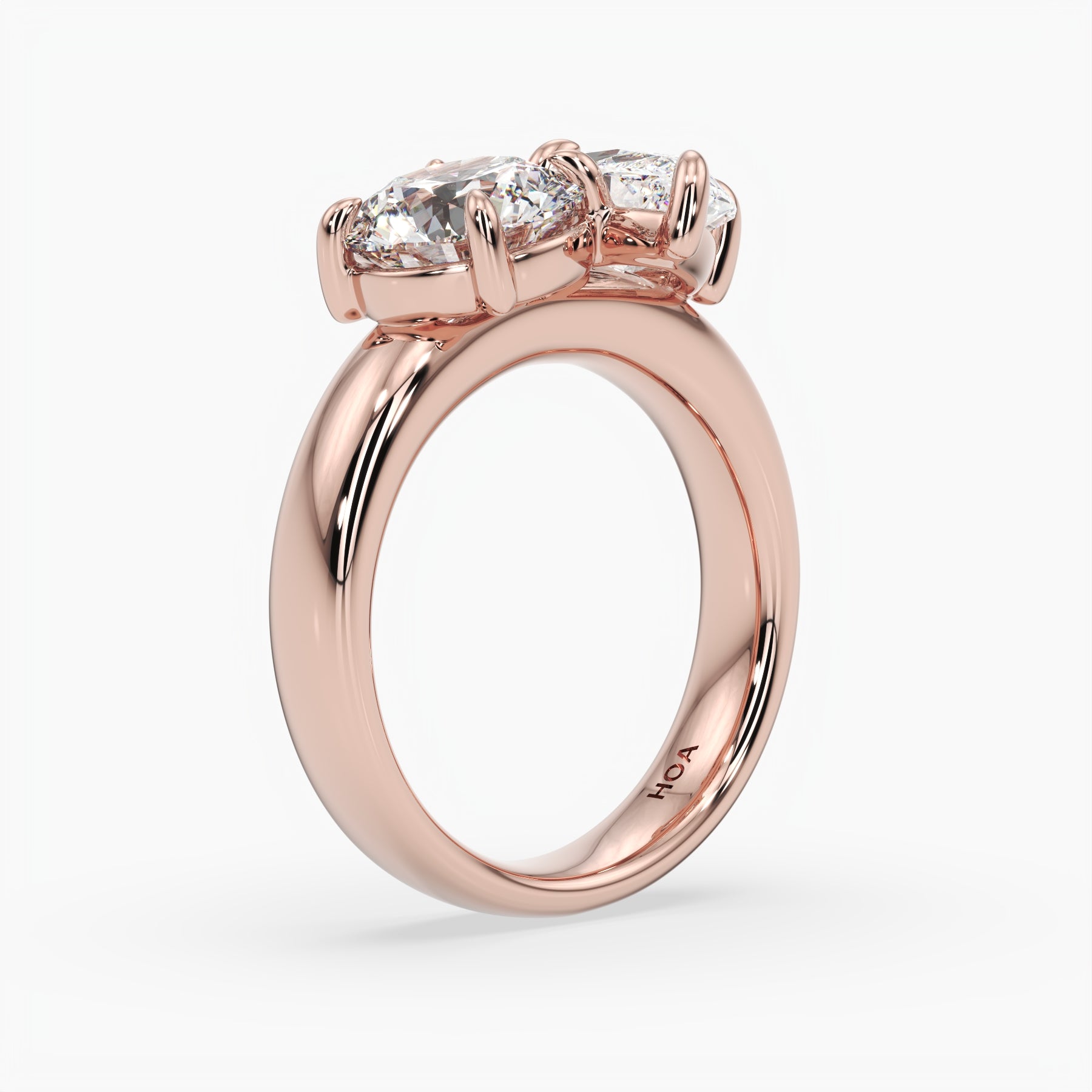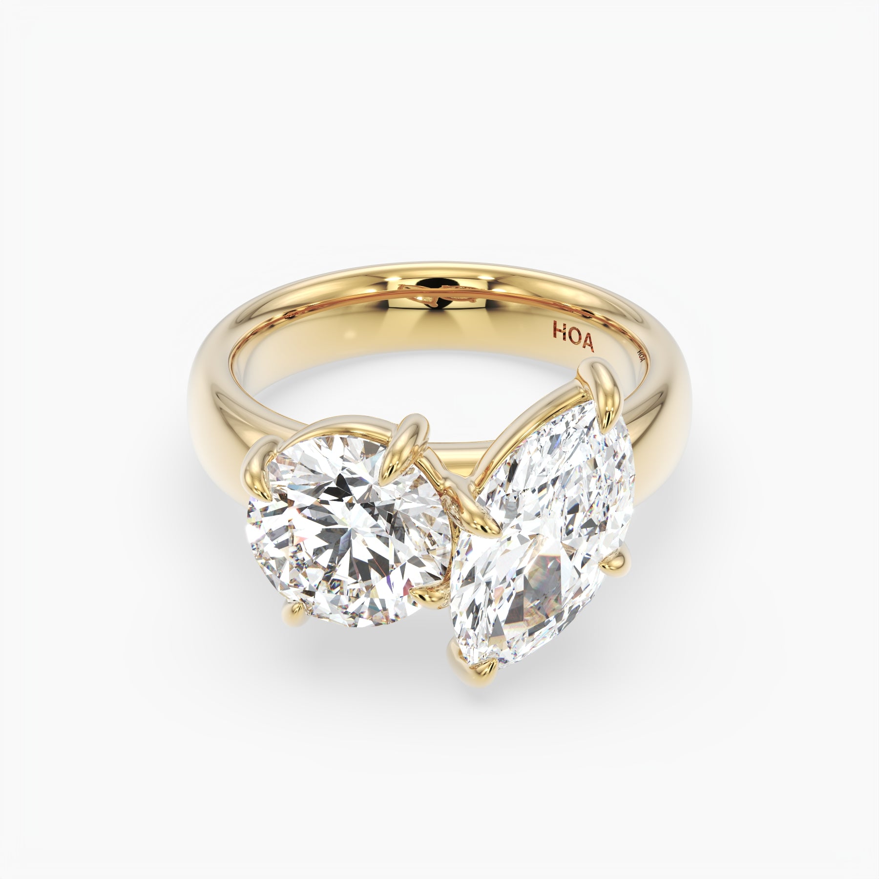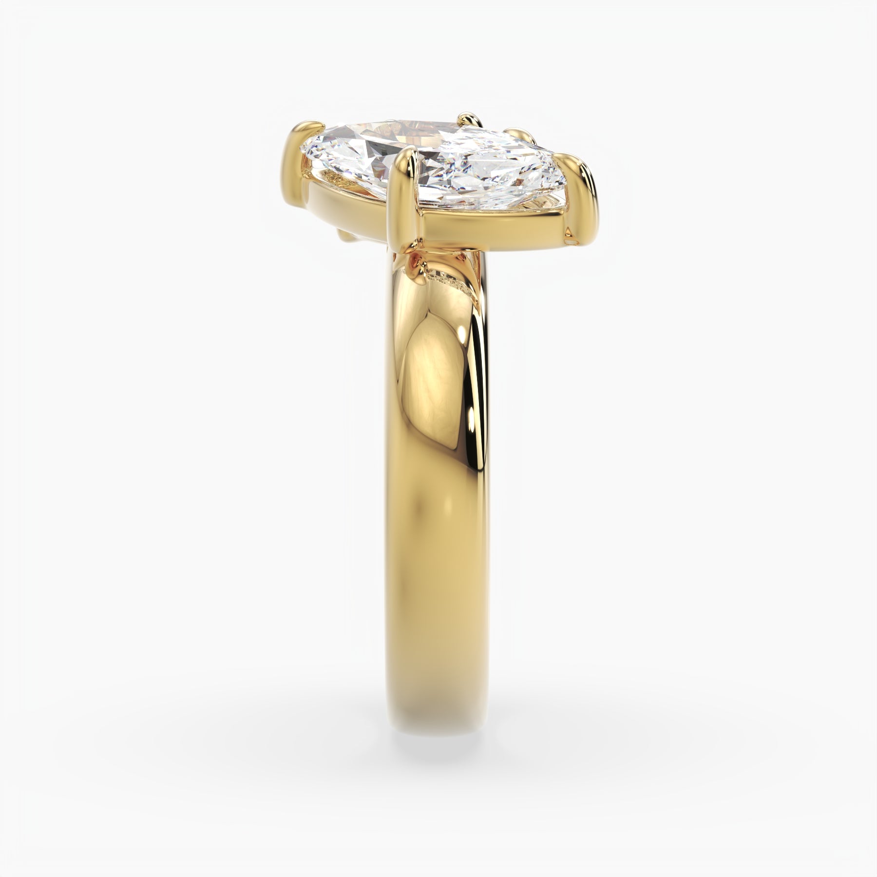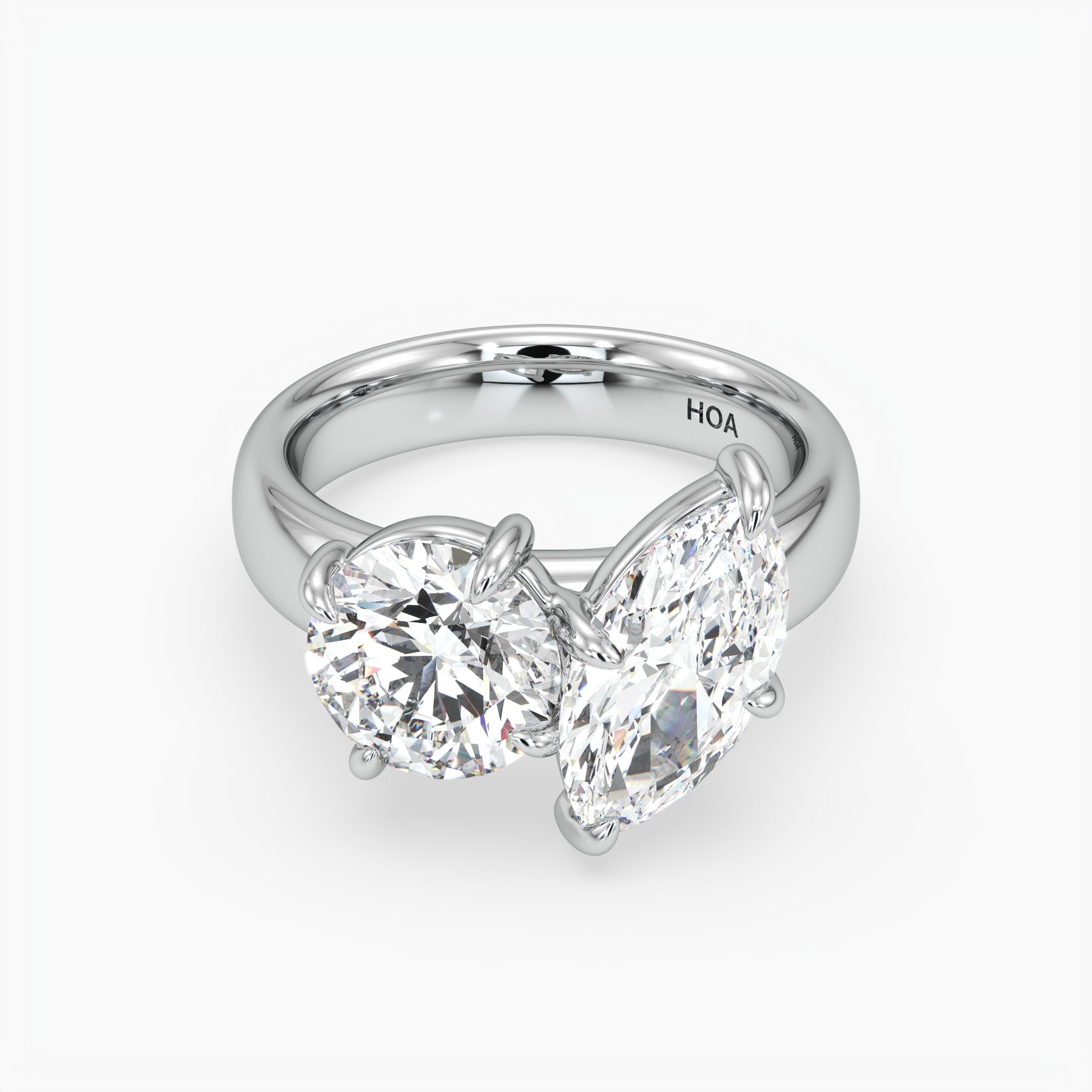 The Willow Toi Et Moi Ring is modern, contemporary and unique. Featuring a 1.5ct Marquise and 2ct Round cut Lab Grown Diamonds set on a bold wide 4mm band.